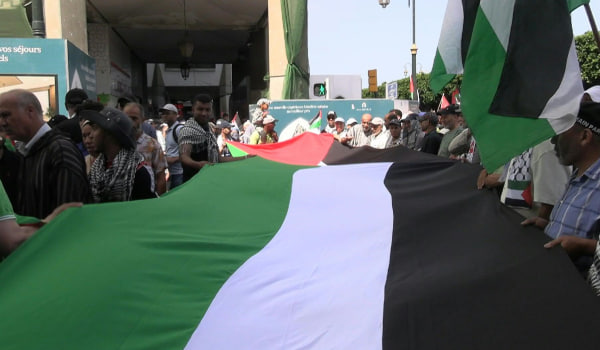 Antara slogan yang dilaungkan ialah “Gaza dibedil, satu penghinaan!”, “Buka sekatan!”, “Maghribi dan Palestin, satu bangsa!” serta “Tolak normalisasi!”.